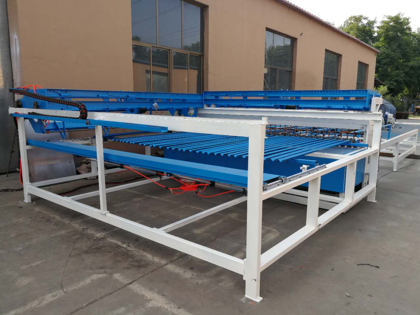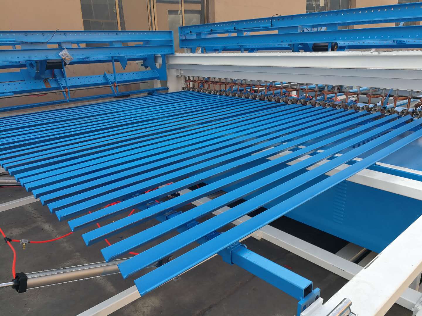 The wire mesh welding machine is new designed machine to make wire mesh panel. The wire mesh welding machine biggest advantage is less labor cost. Only need one person to operate. The line wire and cross wire both pre-straighten and pre-cut by wire straightening cutting machine. The line wire is put into hopper device. The hopper device drop the line wires into dies automatically. The line wire push car push the line wires to the welding machine. The wire mesh welding machine start to work. The cross wire is feed automatically by stepping motor. Wire mesh welding machine adopts CNC synchronous control technology, welding time and divided control welding time are composed of PLC digital programming system, input panel for touch screen or keyboard two kinds, operation is more intelligent, reasonable.