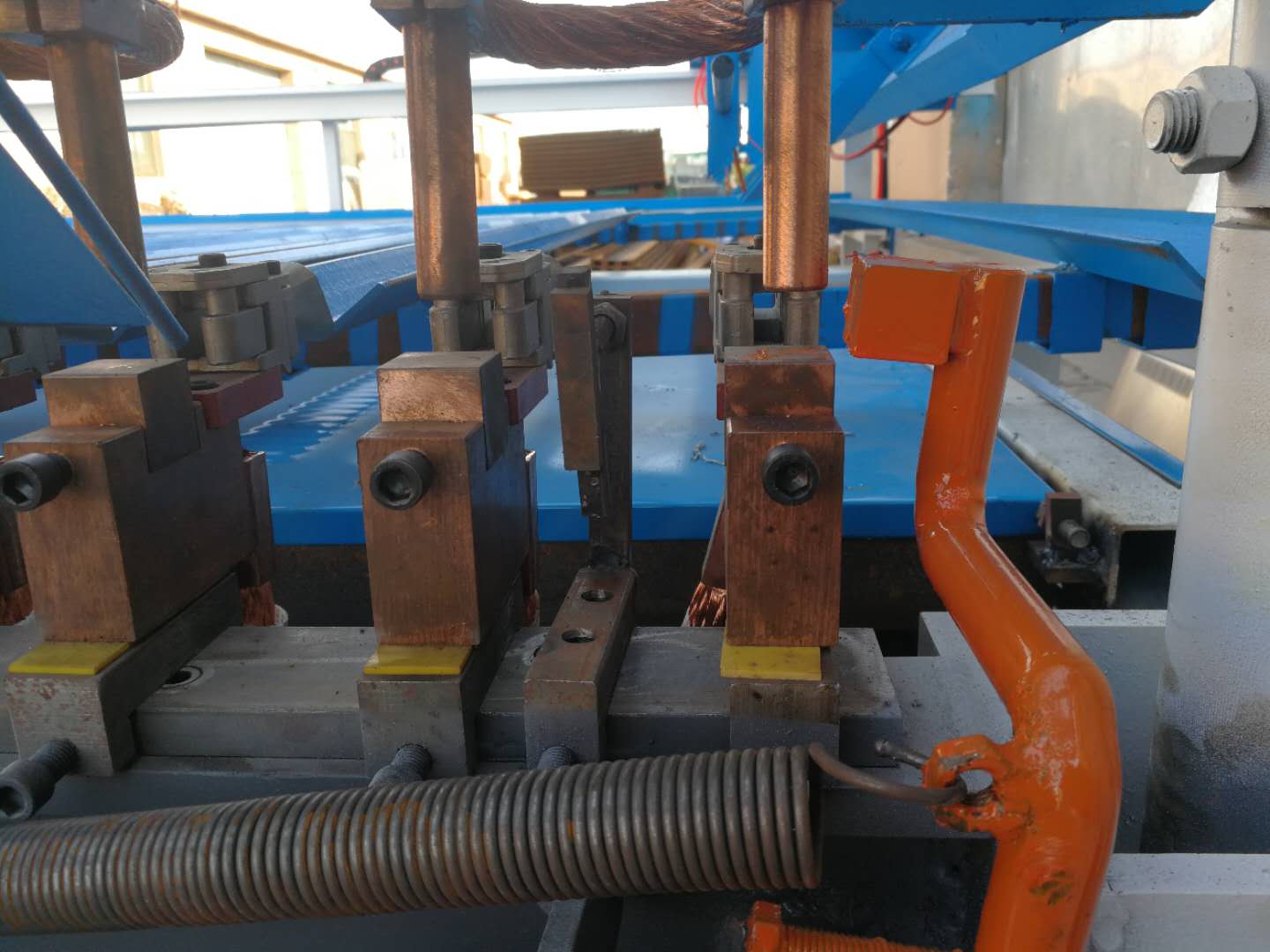 7. The hopper device drop the line wires into dies one by one automatically. The line wire push car push the line wires to the welding machine. The wire mesh welding machine start to work. The cross wire is feed automatically by stepping motor.